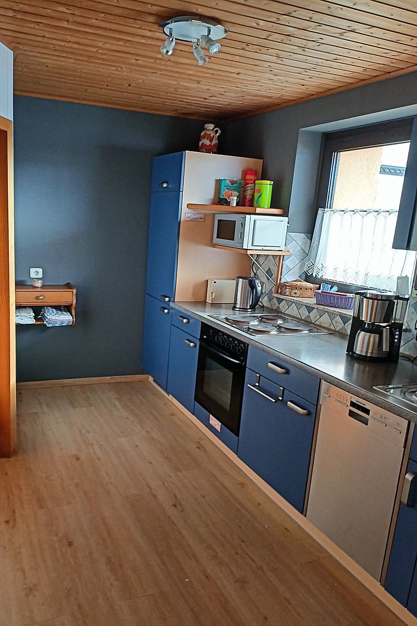 Hier sehen Sie Fotos der Küche unserer kleinen Ferienwohnung, die sich im Souterrain befindet.